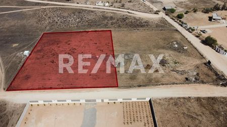 Terreno baldío identificado como predio tierra santa en el ejido porvenir cerca de áreas vinícolas en total son 4,000 m2 de superficie.