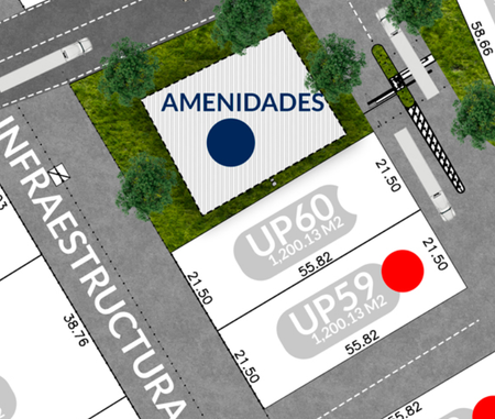 - UP7 de 1,500 m² y UP60 de 1,200 m² junto a la caseta de acceso.