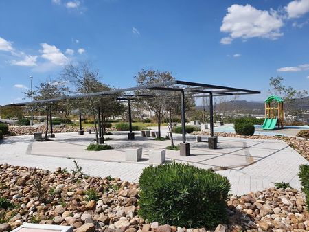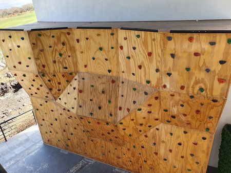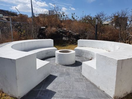 Fogatero, muro de escalada, área para mascotas y juegos infantiles.