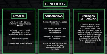 Es un parque industrial en Jalisco con infraestructura y servicios de nivel internacional, excelente ubicación, rutas de acceso, seguridad y vigilancia 24/ los 365 días del año