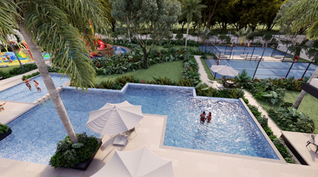 Casa Club de 2 plantas, 4 parques +20 de amenidades exclusivas, vigilancia 24/7, control de acceso (minigolf, acuaparque, salón de eventos cap 100pax + terraza 30pax, restaurante bar 50pax, 2 canchas de padel, entre otros)