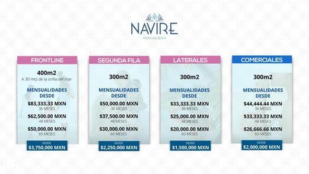NAVIRE se compromete a entregar servicios esenciales como agua potable y energía eléctrica a pie de lote, así como delimitaciones con mojoneras y vialidades playeras internas hechas de sascab compactado, con un plazo de entrega fijado para el año 2028. Este desarrollo no solo ofrece una inversión segura, sino también la oportunidad de ser parte de una comunidad en crecimiento en una de las últimas playas genuinamente pacíficas del estado.