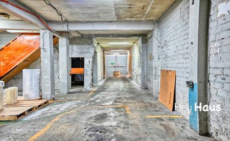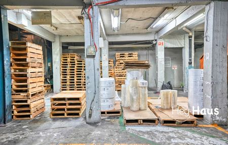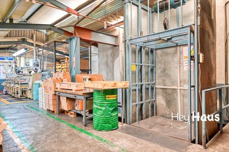 Elevador montacargas funcional con acceso a los distintos niveles. Zona de almacenamiento y área de producción perfectamente delimitadas.