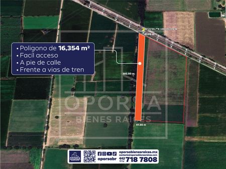 Terreno ubicado frente a carretera y en esquina con calle, justo frente a las vías del tren, en el municipio de Colón, Querétaro. Superficie Total: 16,354 m²