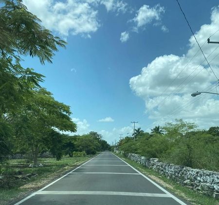 Terreno a orilla de carretera de Kantoyna en la entrada a la Hacienda de Kantoyna, cuenta con 51.19 metros de frente por mas de 146metros de fondo, ideal para desarrollar o lotificación. Urbanizado.