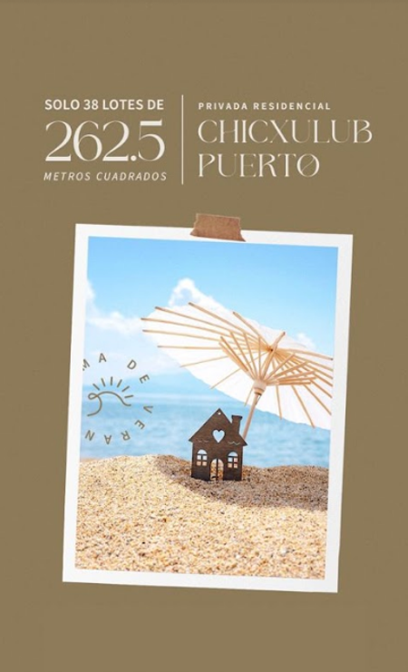 con acceso controlado ,un espacio 100 % residencial ubicado en la playa de Chicxulub Puerto a sólo una cuadra de la playa, donde podrá construir su casa.