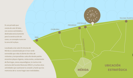 Está a 25 minutos de Mérida , cerca de playas, restaurantes, avistamientos de flamingos, zonas arqueológicas, la marina más exclusiva del sureste Mexicano "KINUH".