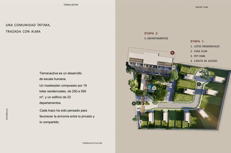 Un masterplan compuesto por 19 lotes residenciales, de 250 a 595 m.