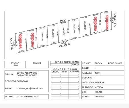 Medidas de cada lote: 11 m de frente x 19.50 m de fondo