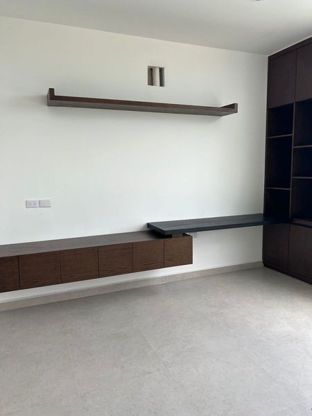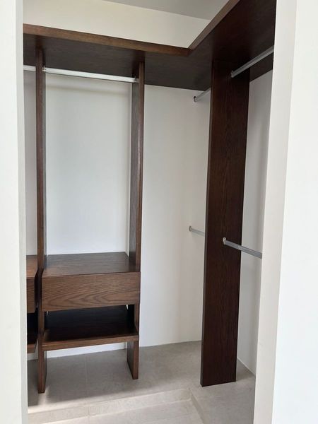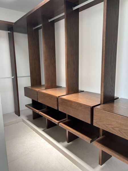 • Gavetas inferiores y superiores en cocina con acabado de cedro y encino