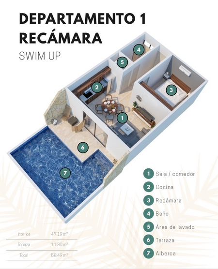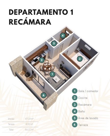 * Departamento de 1 Recámara con 56m2 / 602sq ft desde $2,654,000 MN