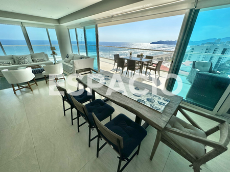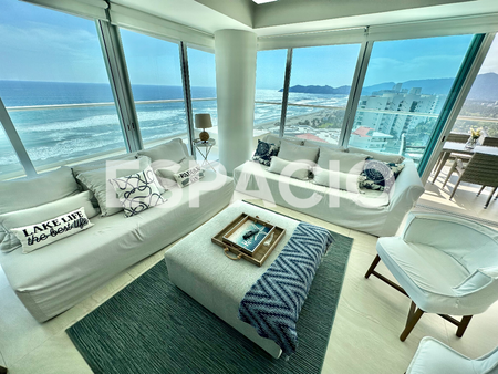 Amenidades: Sky Pool con Snack Bar, Restaurante con servicio a su departamento, Gym, Ludoteca, Business Center, Cancha de Pádel, Spa, Lobby, Albercas con acceso a Playa con muebles de exterior a disposición, Seguridad 24 Hras.