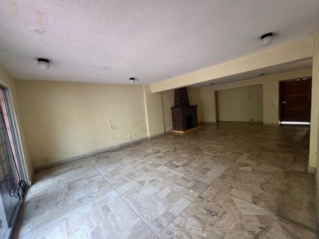-ZONA SOCIAL- La puerta principal de caoba te abre a una gran estancia abierta de flexible, acomodo con piso de terrazo, chimenea,, y gran ventanal para salir a un gran patio posterior y jardín. La fachada posterior maneja mucho más diseño, movimiento y buena articulación.