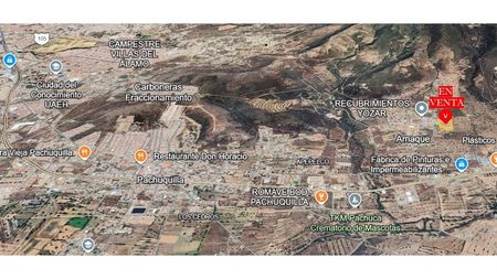 Terreno en Venta en el Amaque, Pachuquilla, Mineral de la Reforma. Frente a línea de agua potable, drenaje y energía eléctrica; A 175 m de vialidad pavimentada; a 3.1 km de la Presidencia Municipal de Mineral de la Reforma, a 6 km de Ciudad del Conocimiento (antes Ciudad Universitaria) UAEH, a 6.4 km de Plaza Universidad, a 5.7 km de Bodega Aurrera Providencia. Tiene opción para ser aprovechado para Construcción de Vivienda, Casas, Departamentos, Desarrollo Habitacional, Industrial, Bodegas, Agricultura, Agrícola, Ganadería, Ganadera, Turismo, etc. Cerca de Servicios Básicos, Centros Comerciales, Hospitales, Escuelas de Nivel Básico a Superior como ICATHI.