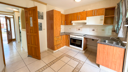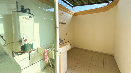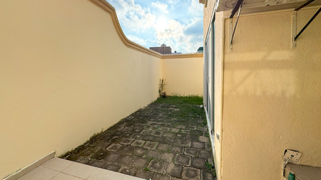 Estacionamiento para 2 autos, pasillo de servicio con acceso a patio, amplia sala comedor, estudio, terraza, medio baño para visitas, cocina integral independiente equipada con estufa, campana y alacena, área de lavado techada, patio.
