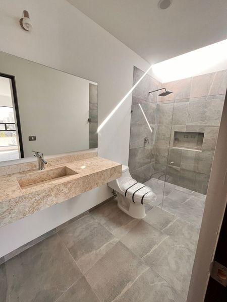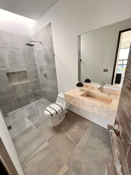 - 4 recámaras con baño (y una recámara está en planta baja) la principal con walkin closet, las otras con closet.