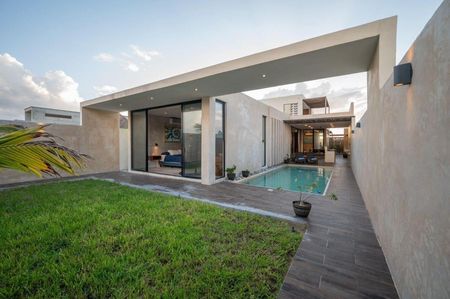 Ubicada en San Benito, Yucatán, esta exclusiva residencia a 100 metros del mar ofrece amplios espacios, diseño contemporáneo y acabados de alta calidad.