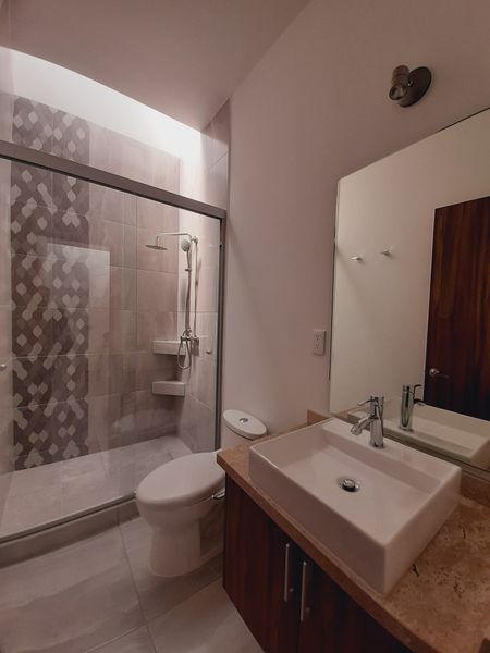 EN PLANTA ALTA BAÑO COMPLETO CENTRAL CON REGADERA TIPO CASCADA Y LLAVES MONOMAN, 2 RECAMARAS CON CLOSET EN CADA UNA Y LA RECAMARA PRINCIPAL AMPLIA CON VESTIDOR, LAVABO INDEPENDIENTE A L BAÑO Y REGADERA TIPO CASCADA.