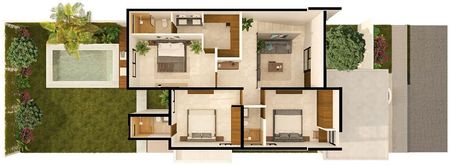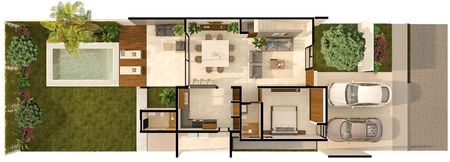 minimalistas. La privada cuenta una caseta de acceso en el centro con un diseño