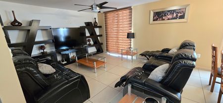 Equipamiento: Recién pintada, piso firme en cochera y patio trasero, persianas, mosquiteros, bodega debajo de escalera, aire acondicionado en recamara secundaria, lamparas.