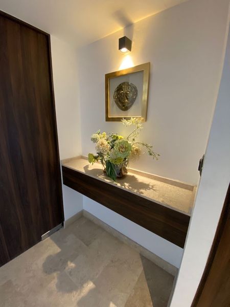 - EQUIPAMIENTO: CLOSET DE VISITA, ENCIMERA DE RECIBIDOR, ENMARCAMIENTO DE NICHO ILUMINADO, ALTURA DE PUERTAS 2.40 m.