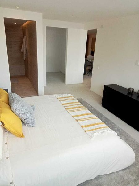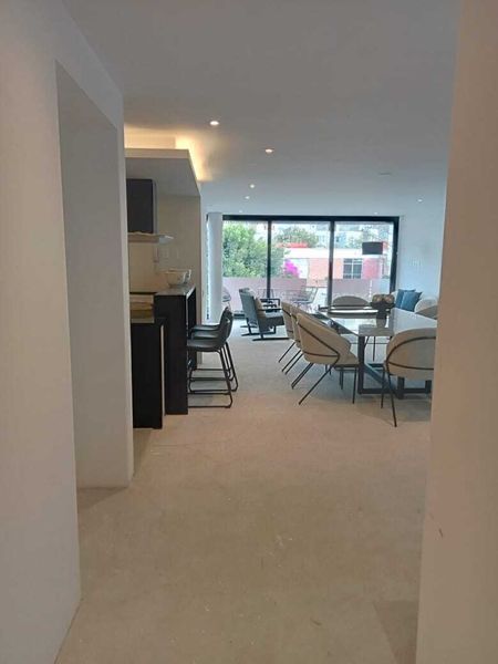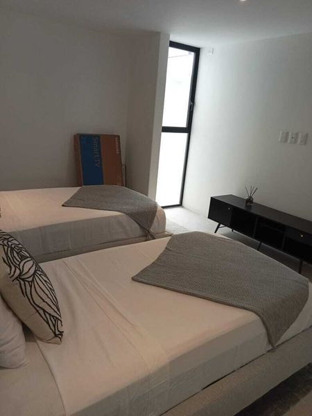 El departamento cuenta con tres amplias recámaras, cada una diseñada para ofrecer el máximo confort y privacidad. Dispone de tres baños completos y medio baño adicional para visitas, todos con acabados de alta calidad.
