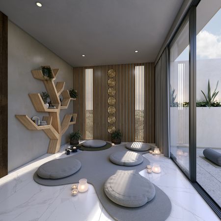 Complejo de lujo compuesto por 16 departamentos ubicados en el corazón de Montes de Amé, una de las zonas más exclusivas del estado, departamentos diseñados para impulsar el autodescubrimiento, enfocado en el desarrollo humano a nivel físico, mental, emocional y espiritual.