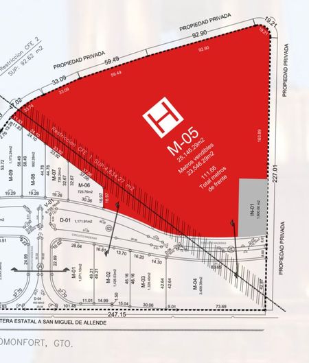 Este macrolote de 2.3 hectáreas cuenta con uso mixto habitacional, comercial y de servicios, ideal para desarrollar proyectos con alta demanda en la zona. Forma parte de Ciudad Madera, un desarrollo cuya sección habitacional y comercial está totalmente vendida, lo que asegura un entorno activo y en consolidación.