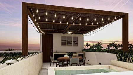 Cuenta con un diseno vanguardista tipo «TULUM», entendiendo la verdadera esencia de estar en la playa, disfrutar en familia y en espacios funcionales que permiten la convivencia y relajación.