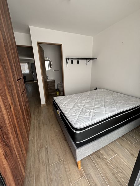 - Recámara principal con acceso al patio. Cama matrimonial, baño completo privado con espejo, clóset.