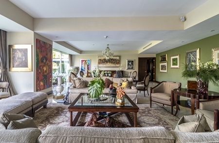 EL DEPARTAMENTO CUENTA CON 3 AMPLIAS RECAMARAS, CADA UNA CON BAÑO Y VESTIDOR , SALA, COMEDOR DE MUY BUEN TAMAÑO ,, TERRAZA GRANDE PERGOLADA CON SALA COMEDOR Y BARRA ,FAMILY DE MUY BUEN TAMAÑO, CON UNA AREA DE BAR,, DESPACHO, COCINA INTEGRAL EQUIPADA CON DOS ALACENAS , SONIDO INTEGRADO,CALEFACCION HIDRONICA .