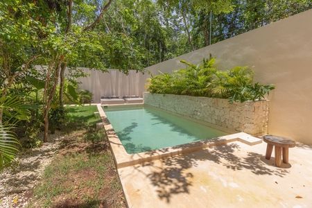 Este nuevo proyecto de villa de lujo se ubica en la exclusiva zona residencial de Aldea Zama, en Tulum. Rodeado de selva tropical y a pocos minutos del centro bohemio y chic de Tulum, así como de la nueva carretera que lleva directamente a la zona hotelera y a las hermosas playas de arena blanca, esta ubicación es inigualable. Los amantes de la naturaleza apreciarán la cercanía a las ruinas de Tulum y Cobá, además de las docenas de impresionantes cenotes distribuidos por la selva maya.