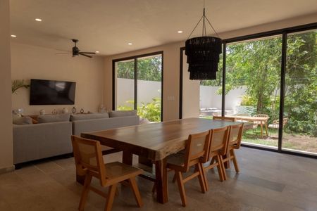 Villa Flora es una hermosa villa de 2 niveles, con cuatro recámaras, cuatro baños, tres balcones y una alberca. Su amplia distribución abierta cuenta con una cocina moderna y sala-comedor llenos de luz natural, que se extienden hacia un patio techado frente al área de la alberca y el jardín. Este es el lugar perfecto para convivir en días calurosos o disfrutar de tardes relajadas. La propiedad está completamente bardeada, ofreciendo privacidad y seguridad para usted y sus huéspedes. La villa cuenta con pisos de loseta y acabados de alta calidad, duraderos y fáciles de mantener. Se ofrece en venta sin muebles, pero equipada con aire acondicionado.