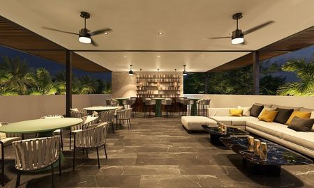 Cuenta dos cocina con alacena, sala, comedor, terraza, 1/2 baño, recámara principal con closet vestidor, bañó completo y terraza, recámara secundaria con closet vestidor y baño completo.