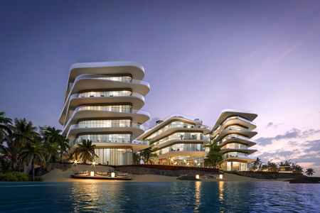 Un espectacular cuerpo de agua rodea las 39 villas y 14 departamentos que comprenden Harmonia