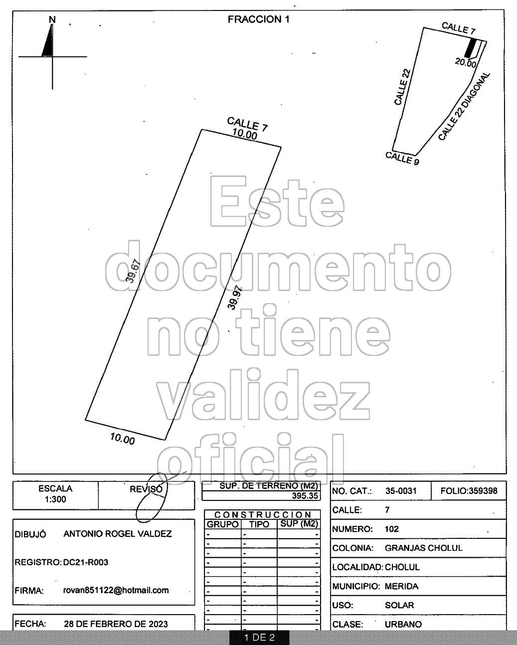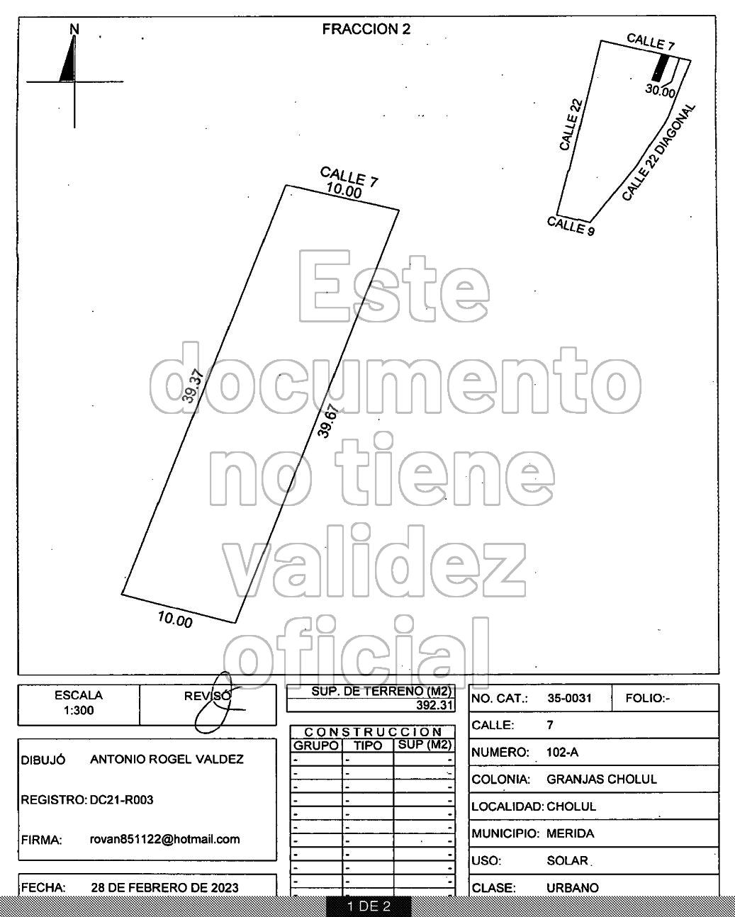 Lote 2 10.00 m x 39.67 m = 392.31 m2 / $1'255,392.00