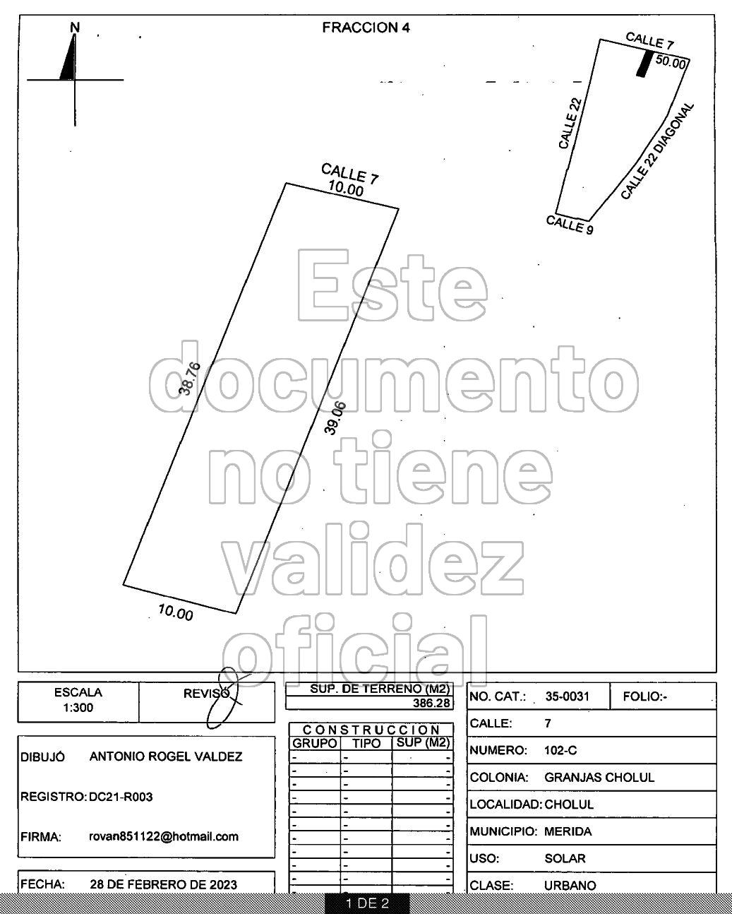 Lote 4 10.00 m x 39.06 m = 386.28 m2 / $1'236,096.00